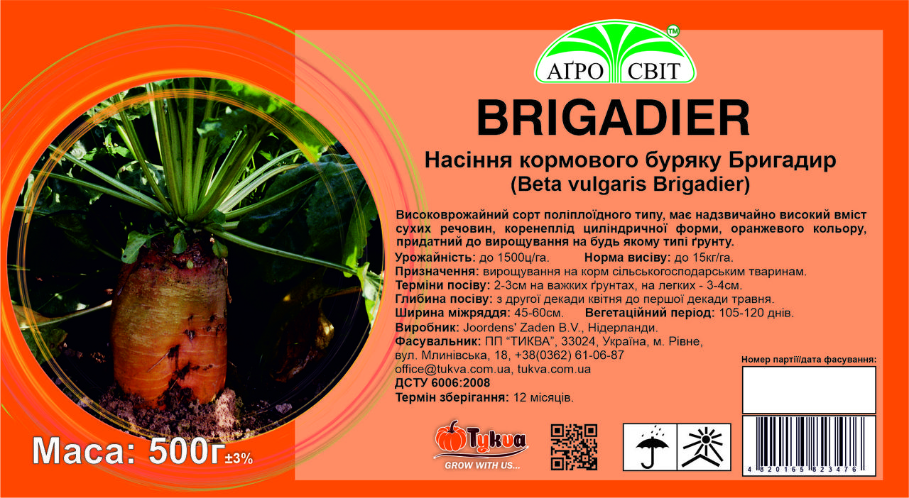 - Насіння кормового буряка Бригадир Нідерланди 0,5 кг - чемпіон світу за врожайністю, поліплоїдний сорт.