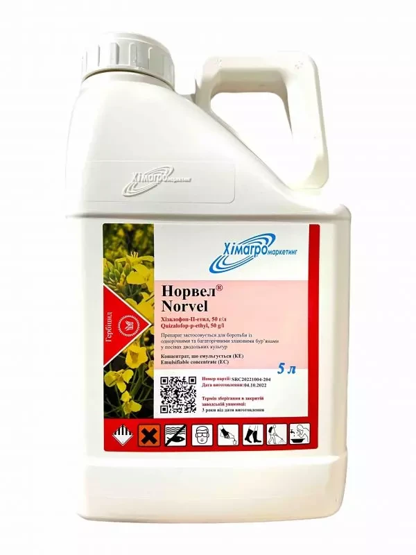 Норвел - системний післясходовий гербіцид для боротьби з однорічними та багаторічними злаковими бур'янами, в тому числі з пирієм повзучим і свинориєм в посівах буряку цукрового, соняшнику, ріпаку, сої та інших культур.